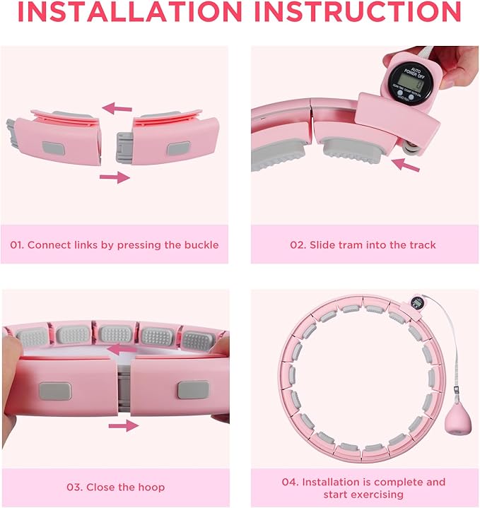 - 【How to avoid stuck】Here’s the instructions on manual that how to avoid stuck: It needs right operation like, you must adjust hoop to right size of waits, and hoop should be level, if it hung diagonally at the waist, it may cause the hula hoop to stuck.