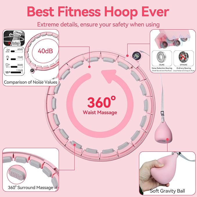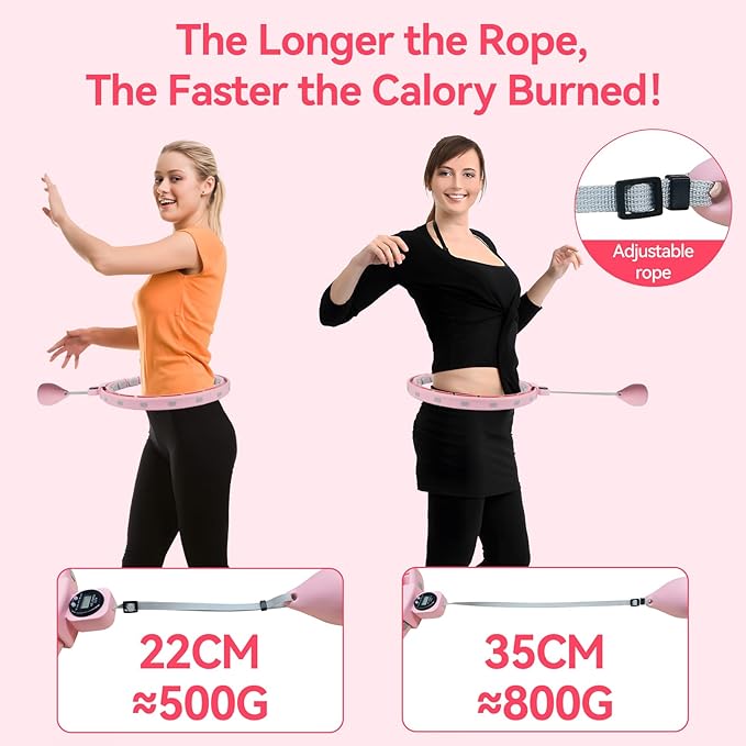 - 【Fitness & Massage points】Humixx Smart weighted Hoop has massage point on each knot. Feeling 360° waist massage with extraordinary fitness and muscle relaxation effects that help you burn fat and calories, massage knots relieve waist pressure and relax mood and achieve the ideal body shaping effect. Moreover, massage points can achieve many acupuncture points to promote blood circulation and achieve a better slimming effect.