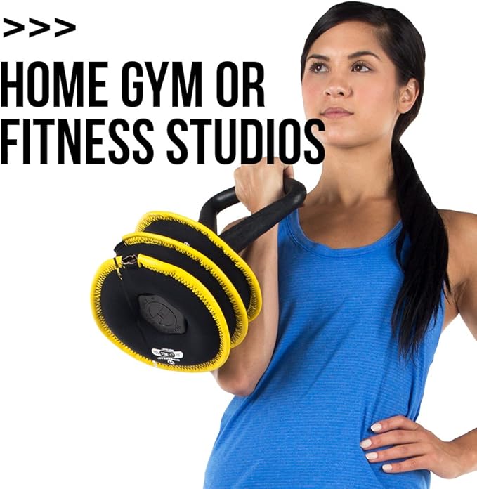 • SOFT QUIET adjustable weight plate bells, heavy-duty fiber glass handle, works with expandable SoftBell system of adjustable kettlebell, dumbbell and cardio barbell free weights that are compact, portable for travel, easy to store for at home fitness. Use SoftBell system strength training weights for children and physical education with adult supervision. No need for kettlebell wrist guards for men or women.