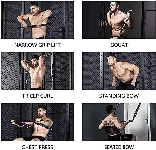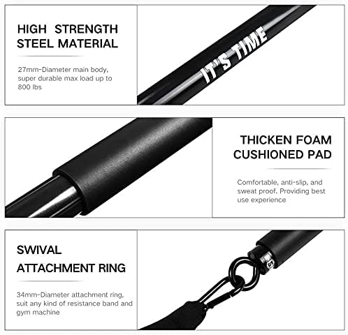- ★DURABLE AND COMFORTABLE - The steel pipe of the whole workout bar is thickened, which is not easily out of shape, bent, or damaged. (max load 800 lbs resistance). The outer body of the resistance band bar has covered heavy-duty comfortable foam rubber, prevent slipping and calloused hands.