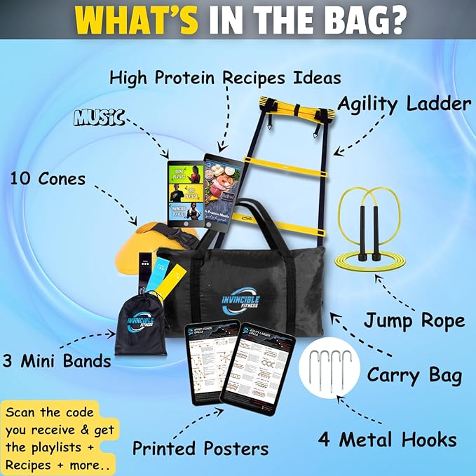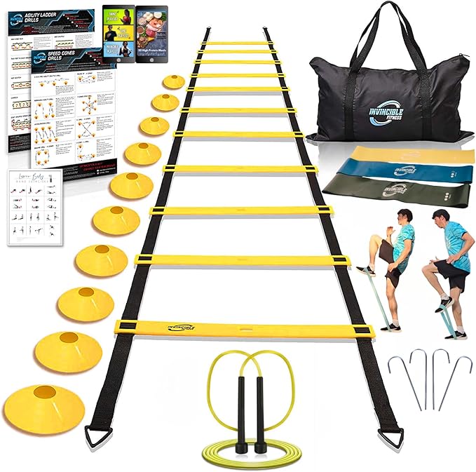 - ✓ Complete Training Bundle: Includes a 15ft. agility ladder, 10 cones, and 3 loop resistance bands for a versatile fitness workout, perfect for trainers and varied routines.