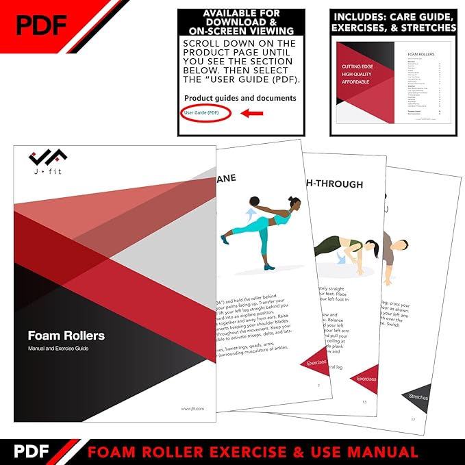 - BONUS WORKOUT GUIDE: Not just a premium foam roller, scroll down for "Product guides and documents" to view our added Manual and Exercise Guide for illustrated step by step exercises and stretches as well as product care