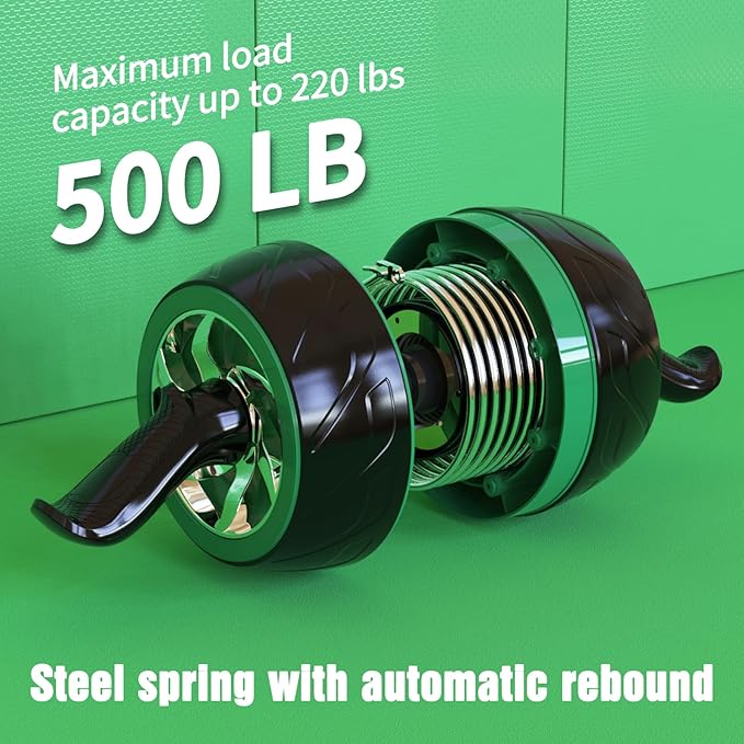 - 【Auto Rebound Technology】JJM Abdominal Roller features the latest auto rebound technology to ensure you can accomplish more intense workouts, while the ab roller comes with thickened, non-slip rubber and its strong carrying capacity ensures your safety first. The built-in spring creates resistance when rolling and helps when returning.