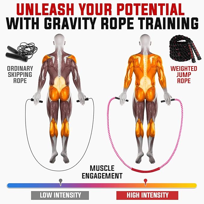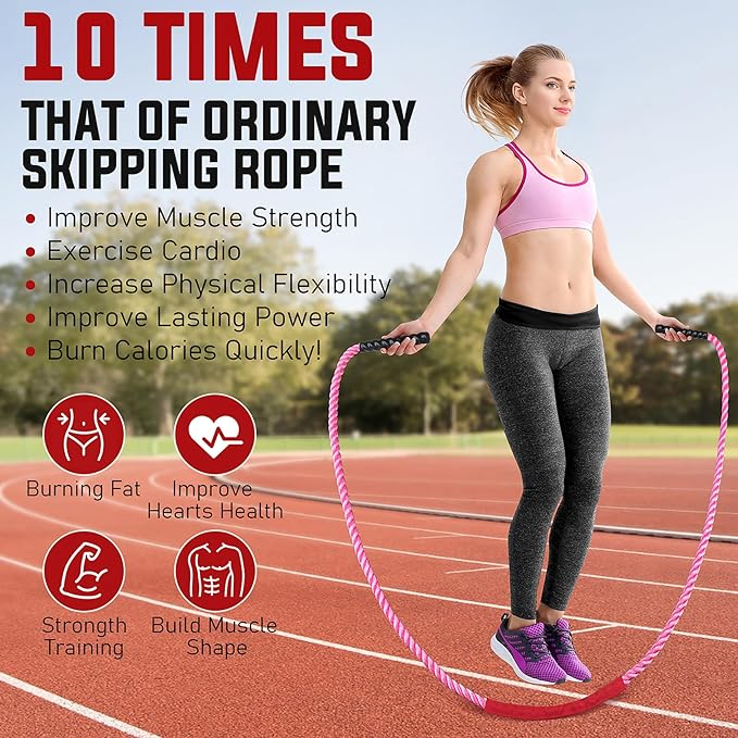 • Weighted Jump Rope. Upgraded 2 Layers Cozy Handle Heavy Duty Skipping Rope, made of quality polyolefin heat shrinkable material. Enhanced the friction of handle to use it more comfortably