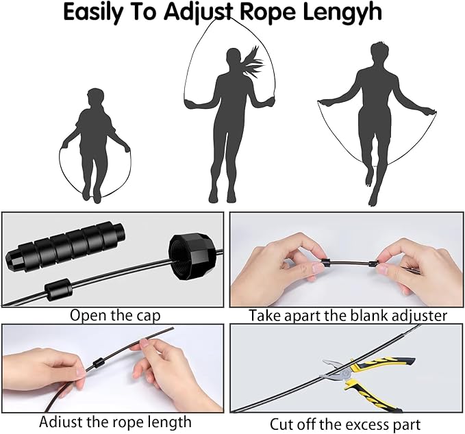 • Adjustable Length: the length of this speed jump ropes can be adjusted easily according to your height, therefore it is suitable for all ages, adults women men and children. You can fix the extra rope or cut the excessive length off.