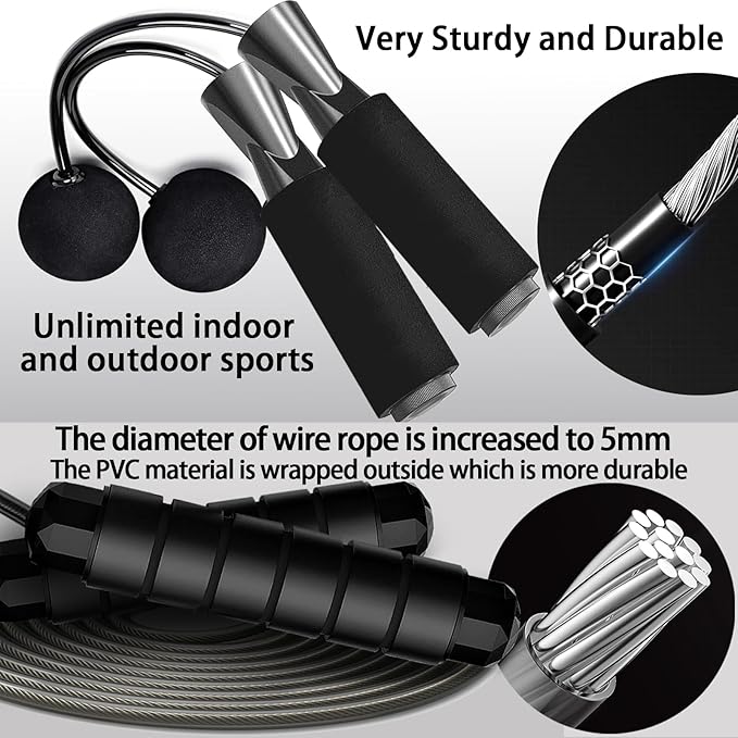 - 【SMOOTH FAST & NO MORE TANGLING】 - High quality ball bearings ensure smooth and rapid speed rotation, avoids the twisting, winding or bending like other fitness ropes,which brings your a perfect exercise of skipping rope.