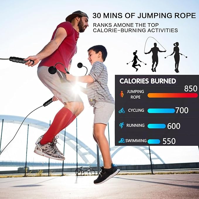 - 【Sports Fitness】- Jump rope is a great calorie-burner. Improves your balance and quickness/coordination by making your mind focus on your feet for sustained periods of time, improving the muscle tension of your whole body