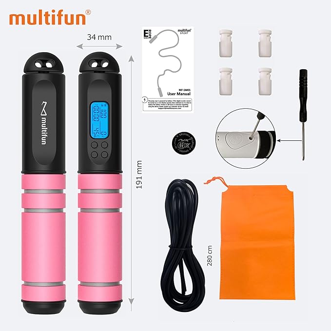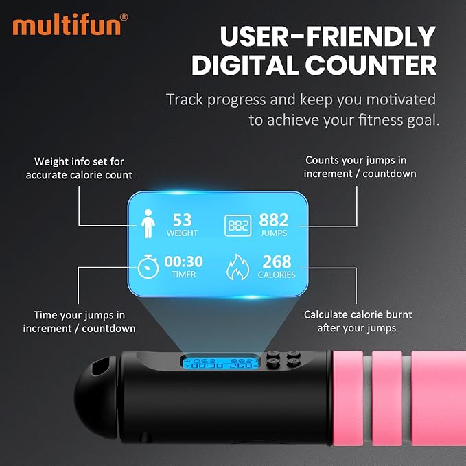 • 【Jump Rope with Counter】With HD LED display on this jump rope, which shows Timer, Weight(lb/kg), Calorie and Circles, Just set your information and it will show you the number of laps and calories.