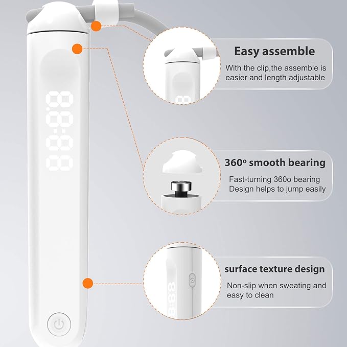 • ACCURATE TRACKING-The counting is also accurate enough for daily exercises,the built-in 3-axis Hall sensor and precise algorithm ensure that the number of valid skipping ropes is calculated only after the bearing rotates 360 degrees.Each of your jumps is accurately recorded