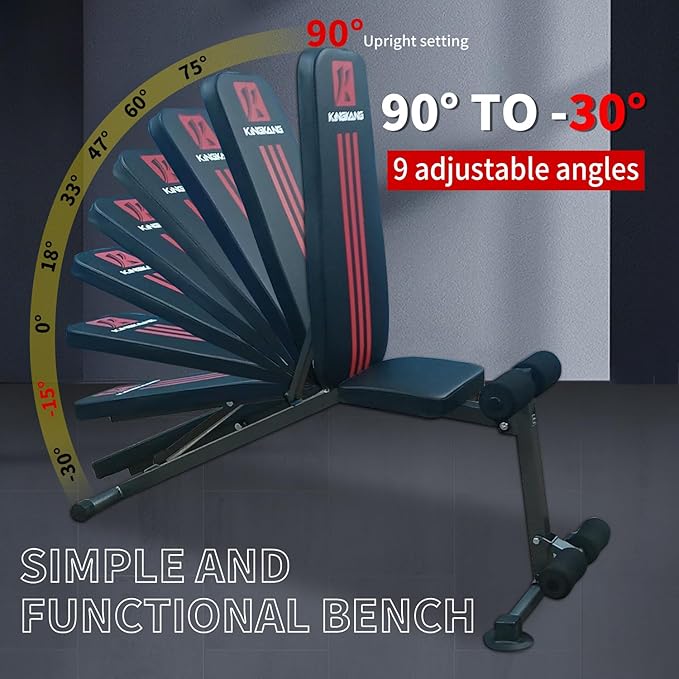 K KiNGKANG Adjustable Weight Bench 800LBS Load, 1 Second 9 Angles