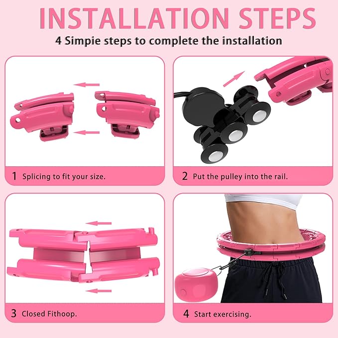 - Easy to use, 2 in 1 fitness massage: Compared with the traditional Exercise hoop, the upgraded smart weighted hoop is easier to use and will not drop, even beginners can use it. When you use a smart weighted Exercise hoop, the 360-degree shock-absorbing massage head will massage your waist to relieve waist pain.
