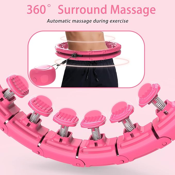 - Easy to use, 2 in 1 fitness massage: Compared with the traditional Exercise hoop, the upgraded smart weighted hoop is easier to use and will not drop, even beginners can use it. When you use a smart weighted Exercise hoop, the 360-degree shock-absorbing massage head will massage your waist to relieve waist pain.
