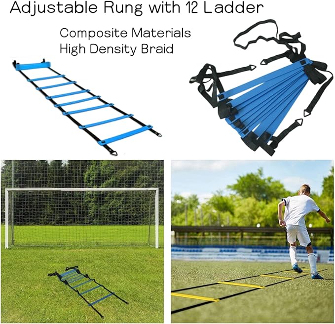 • Suitable for Different Groups of People: Our Agility ladder training equipment kit create a variety of drills for improving, footwork, balance, and explosiveness. Suitable for coaches, football players, basketball players, soccer players, tennis players, athletes of all sorts and fitness enthusiasts. create a fun obstacle course for kids and adults alike