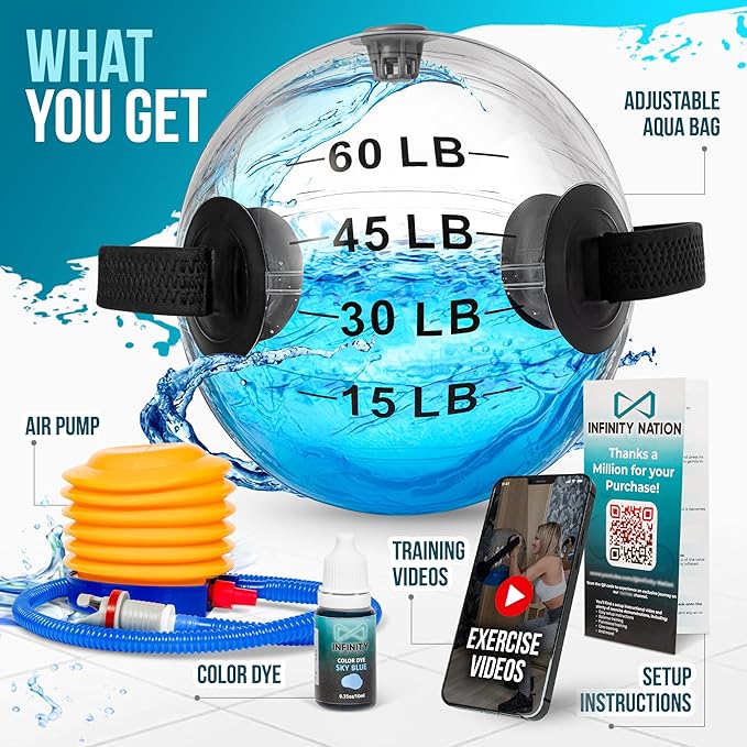 - 【COST-EFFECTIVE】Customize your training intensity by adding or removing water with your aqua ball instead of buying multiple weights.