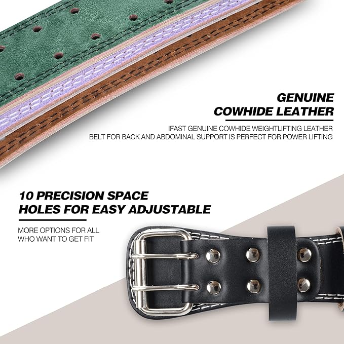 - [Quick & Easy to Adjust] -- Each belt is reinforced with 6 stainless steel rivets and double-row car line technology; each belt has a double-pin roller buckle made of stainless steel which won't rust, with 10 rows of holes that will help you easily adjust the size, suitable for men and women, to provide more options for fitness exercises