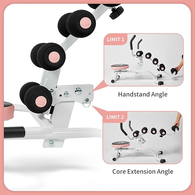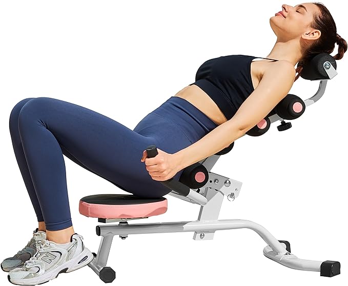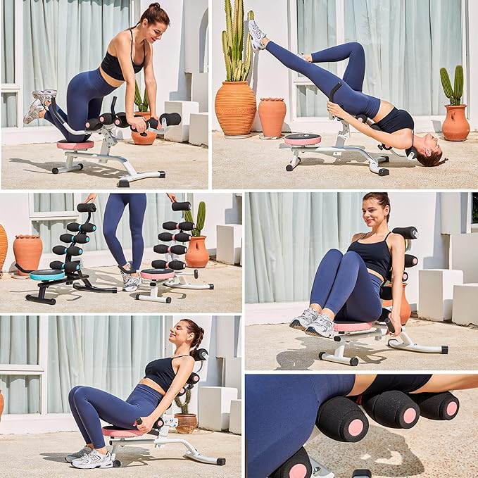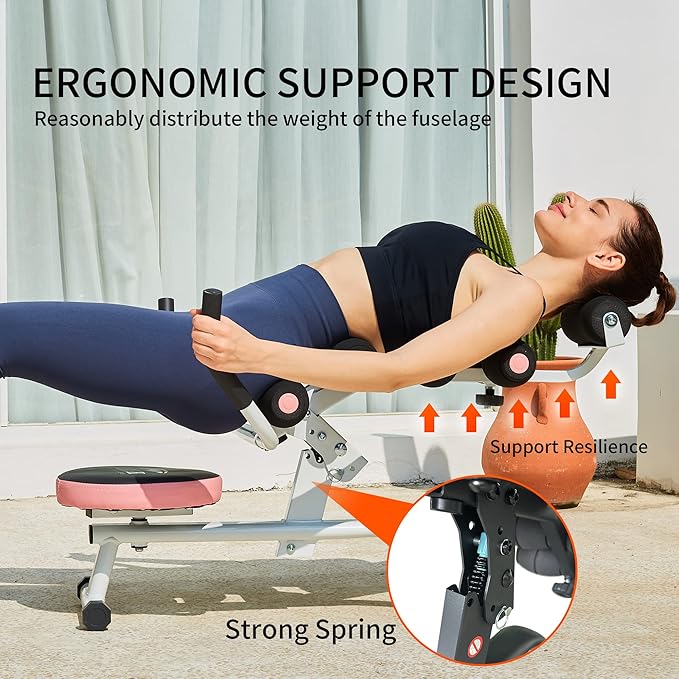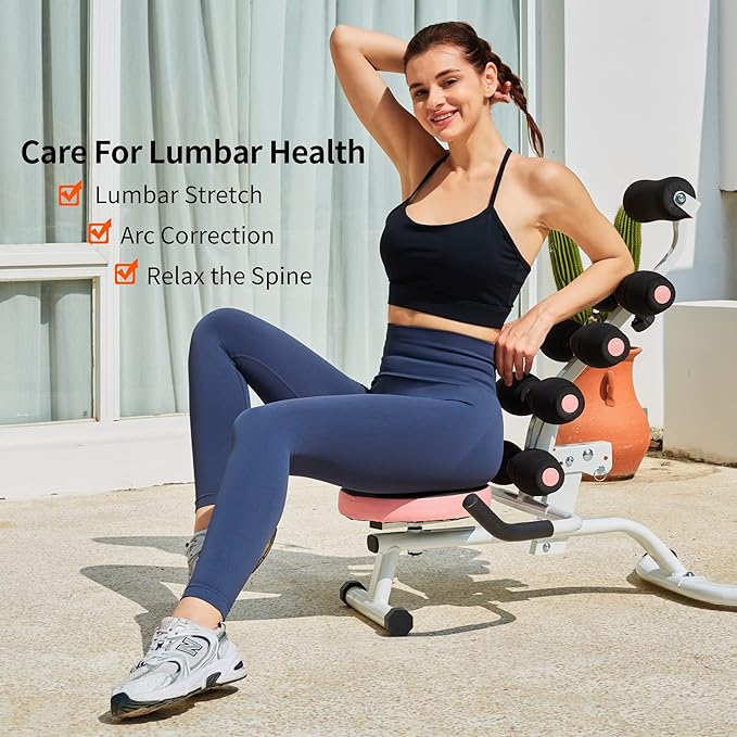 - Unique Design:The fitness machine fits the curve of the human body, cares for your spine and supports your back and neck. The thick round foam can roll while you rock, effectively eliminating the strain on your back and neck.360° Rotate Round PU leather cushion with excellent height from the ground and head support pad with 3-level adjustable heights provide you with comfortable workout experience.