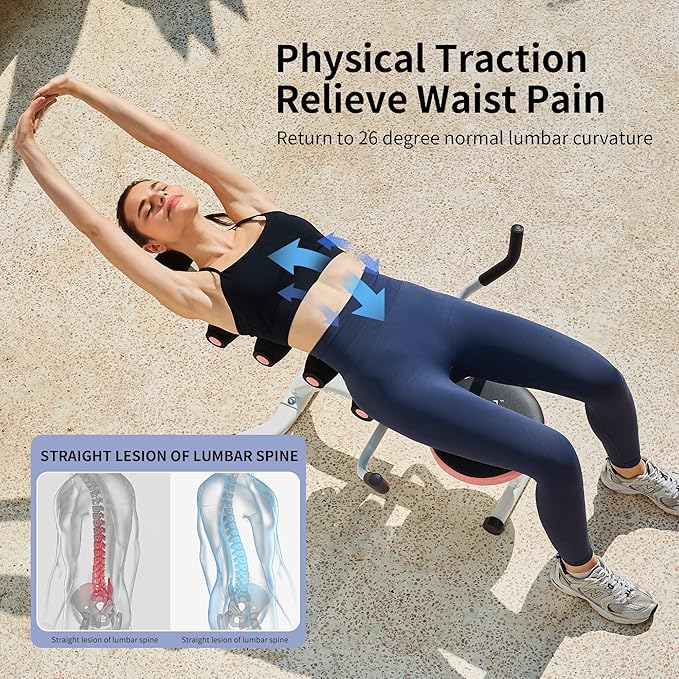 - Back Relax Chair:This Back Relax workout machine will help you get into shape without laying on the floor or putting stress on your knees, back or neck. Our workout chair Integrate inversion therapy, core strengthening and back pain relief to not only help to strengthen your abdominal muscles but also stretch out your back, keep you away from back pain.