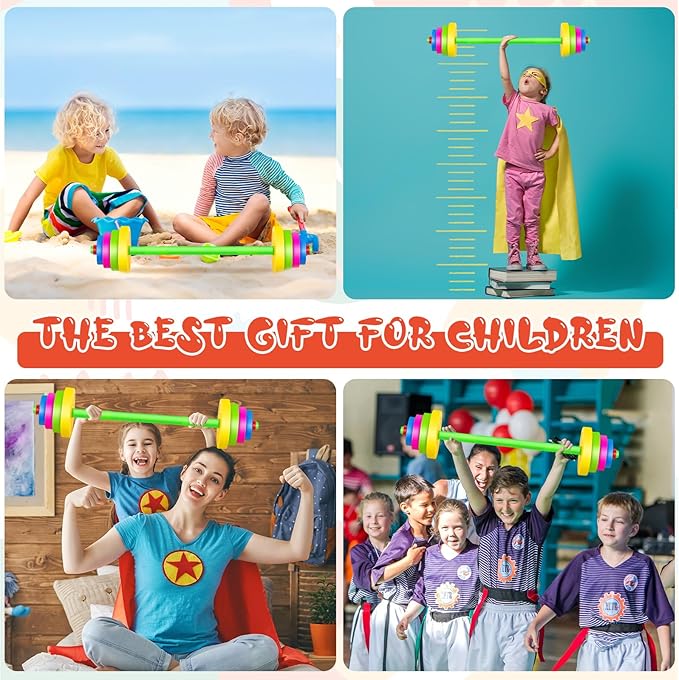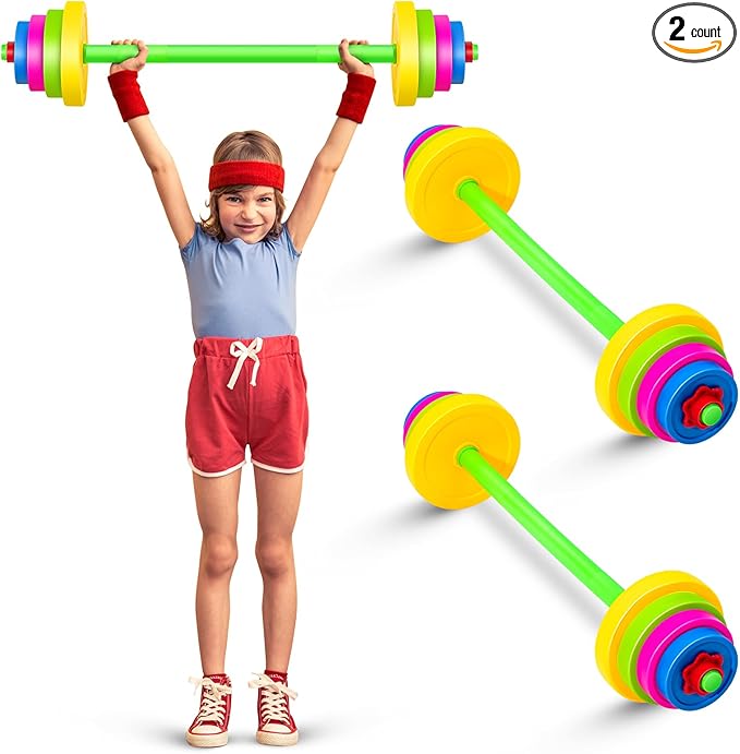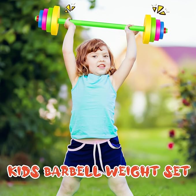 - What You Will Receive: you will receive 2 set of kids weight lifting set, including a barbell bar and 8 weight plates, enough for your child's daily use and replacement to keep your child active and have an enjoyable holiday