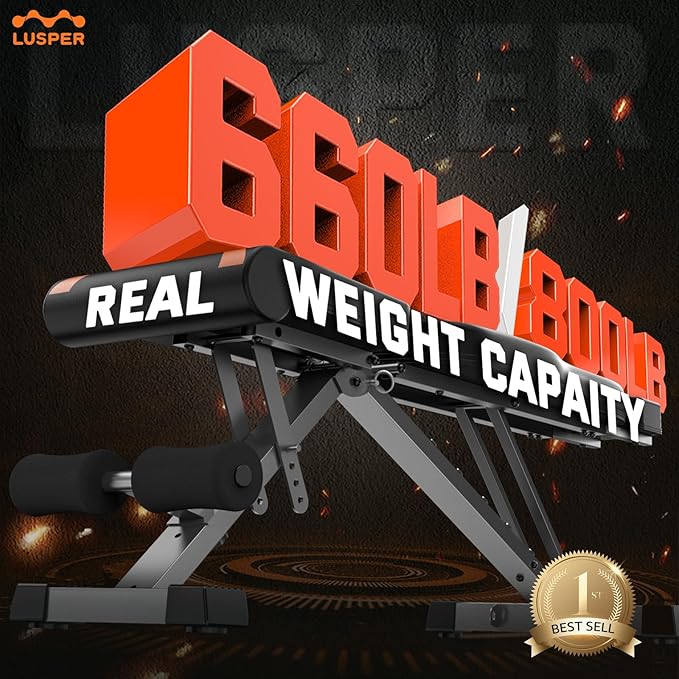 Lusper Adjustable Weight Bench Foldable - 660/800 Lb 3 Sec