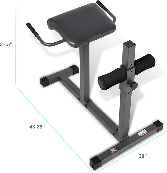 - HYPEREXTENSION BENCH – The Marcy Roman Chair features a back hyperextension station that lets you position yourself correctly while performing a variety of movements. Sit and lean backward to develop your core or flip over to perform back workouts with targeted motions.