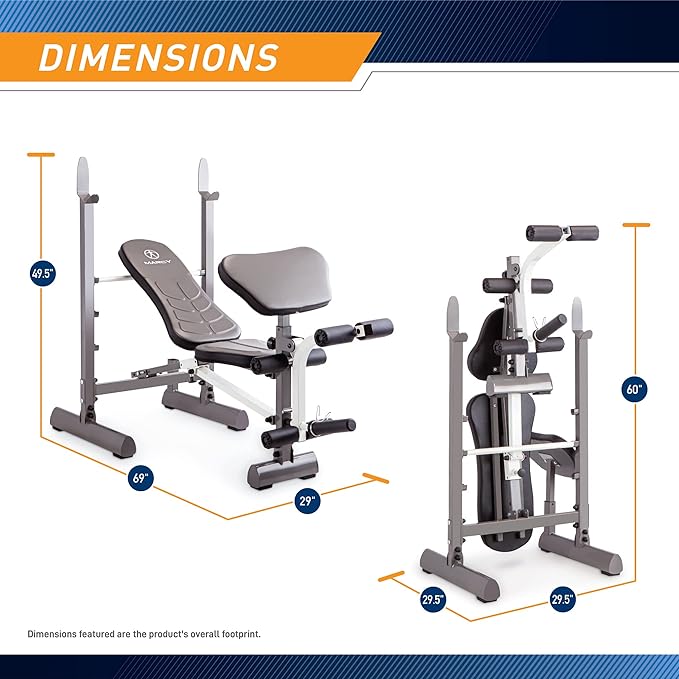 • FULL BODY WORKOUT – The Marcy Folding Standard Weight Bench offers a full body workout so you can chisel your body the way you want it. Get a balanced physique by training with the weight bench’s arm curl facets, back and seat pads or the leg developer.