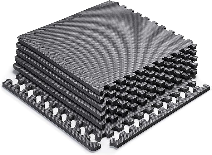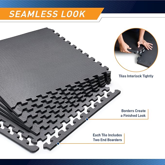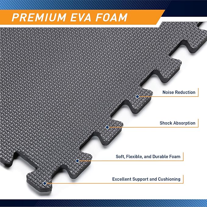 - LOW-IMPACT FOAM SURFACE– Constructed from premium 3/4-inch EVA foam, this gym mat boasts a sturdy construction that provides high density and low impact flooring for the garage or weight room.