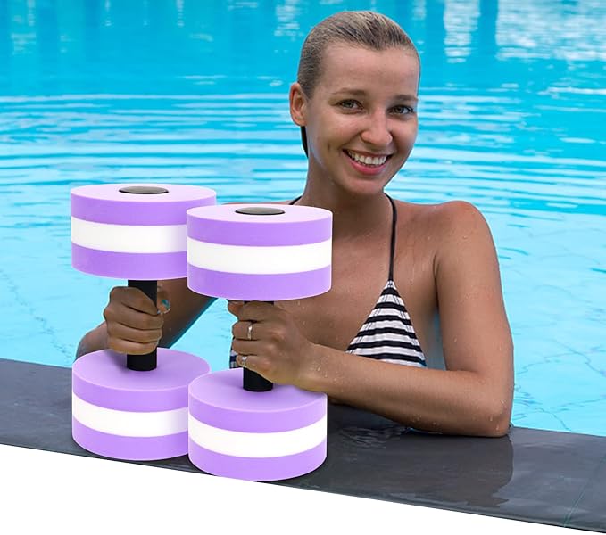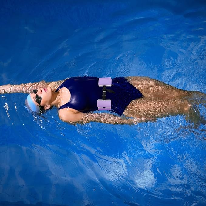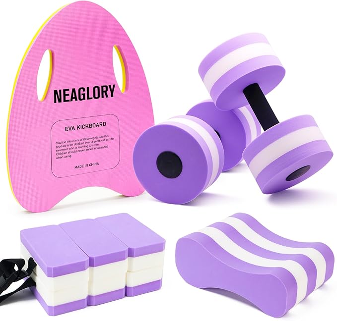 - Aquatic Exercise Equipment: This combo set has all the essential tools you need for aquatic exercise. It includes 2 high-density EVA foam water weights, 1 swimming belt, 1 swimming pull buoy, 1 swimming kickboard.