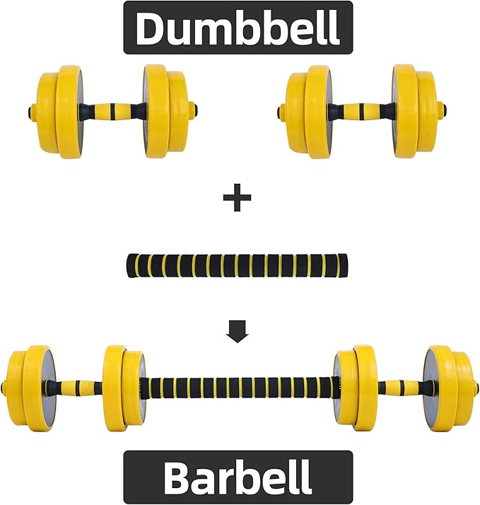 - 2-IN-1 DUMBBELL BARBELL WEIGHT ADJUSTABLE DESIGN-This adjustable dumbbell set comes with a connecting bar that can be easily attached to both dumbbells to transform into a barbell. There are also adjustable weight plates that let you customize the weight of the dumbbell/barbell to your desired setting. This allows you to efficiently use our dumbbell/barbell set for many exercises instead of buying multiple sets.