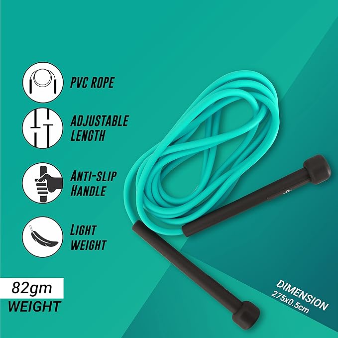 - DURABLE PERFORMANCE: Skipping Rope is made from durable PVC material that won't twist or break during your workout. The comfortable grips are designed so that the product has a long-lasting life. Jump rope is designed for effective workouts for all women, men, and kids.