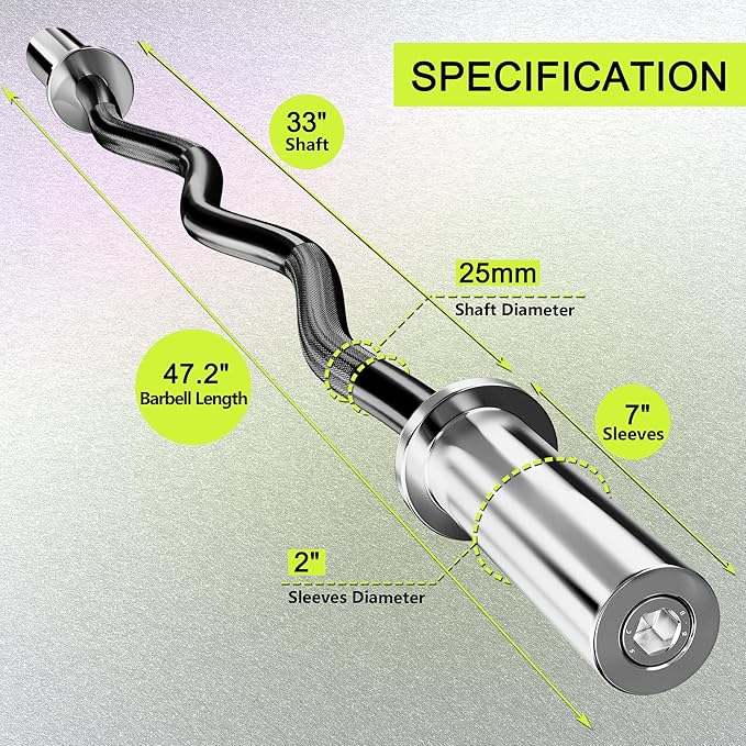 - Compatibility with Weight Plates: The bar features sleeves with a diameter of 2 inches, specifically designed to accommodate 2-inch weight plates. This standard size ensures that users can easily load and secure their desired weight increments onto the bar without any compatibility issues.