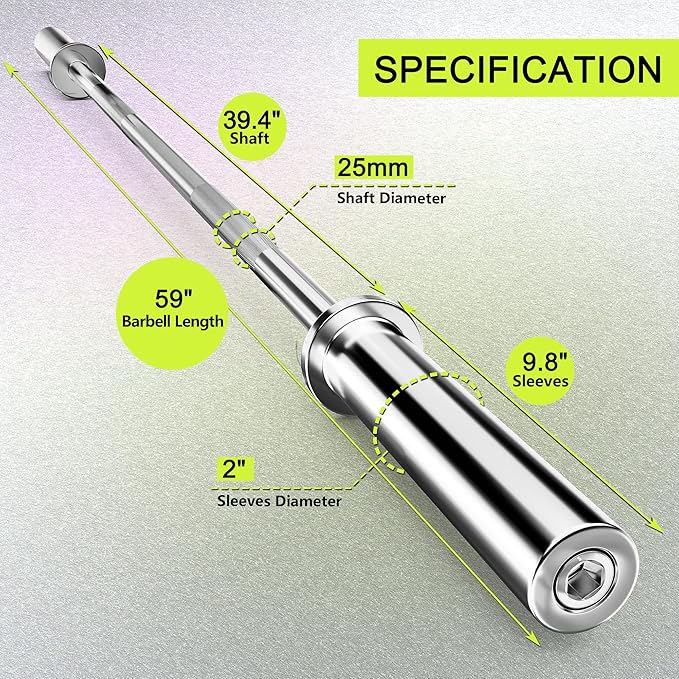 - Superior Construction: Our Olympic barbell, measuring 5ft (1.5m) in length and weighing 18lb, is expertly crafted to meet the demands of intense weightlifting. Its robust design allows it to handle weights of around 400lb, making it a reliable choice for both beginners and experienced lifters.