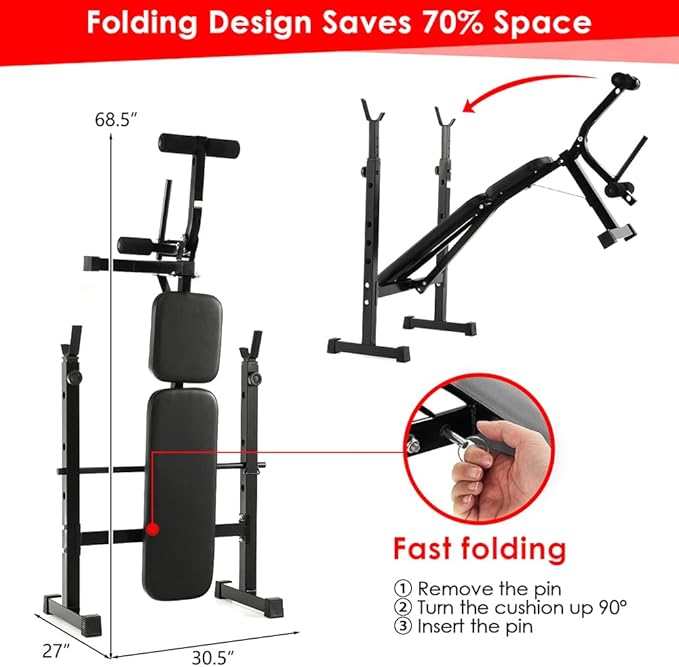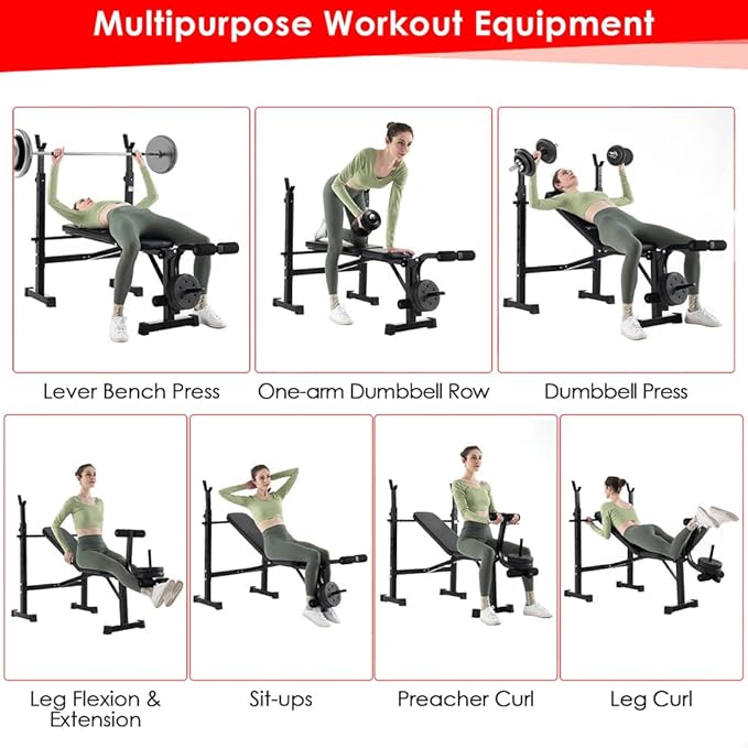 • --Be Stronger & Healthier: Get fit right at home with this multi-purpose Olympic weight bench set for full-body workouts including chest shoulder back abdomen hip arm leg muscles.