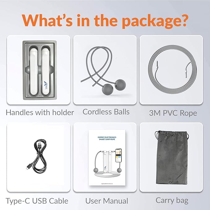 - SMART APP CONTROL: Osprey Electronics smart jump rope is compatible with Osprey Smart Home app. You can keep track of your fitness data and compete with your friends in a team challenge anytime and anywhere.