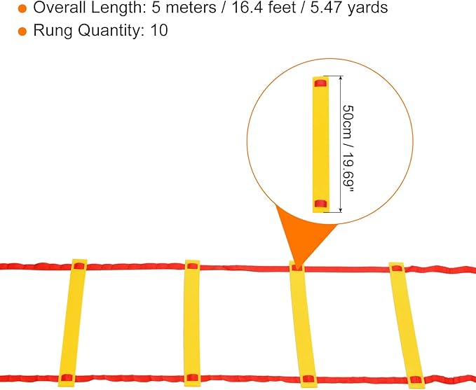 • Rung Quantity: 10; Rung Length: 50cm / 19.69 inch; Overall Length: 5 meters / 16.4 feet / 5.47 yards