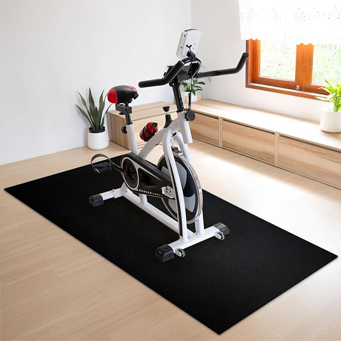 - Non-Slip Surface: The bike mat has a non-slip texture on both sides to keep your workout equipment in place. It can also effectively reduce the vibration and noise generated by the fitness equipment.