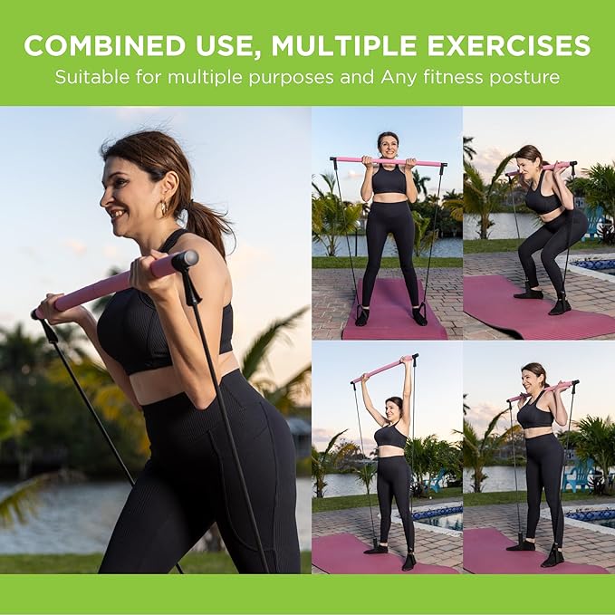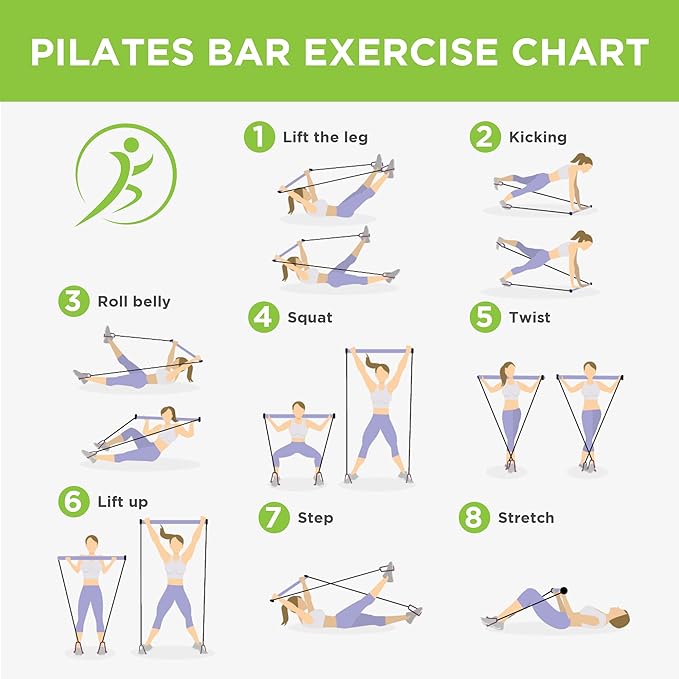 - Versatility: The Pilates bar offers a wide guide of fitness exercises which can be performed to work different muscle groups and aspects of fitness, including strength, flexibility, balance and coordination. You can do exercises in total body workout from the core to movements to improve posture and stability, the pilates bar improving muscle and joint flexibility which in turn It can also reduce muscle stiffness and improve mobility in everyday life.