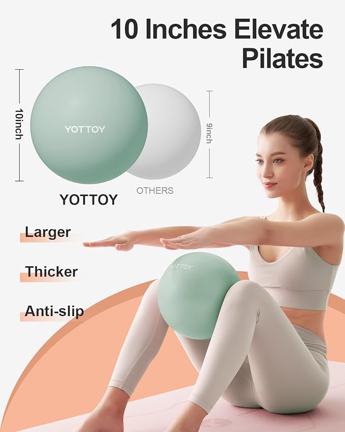 - Anti-slip Surface: The surface of the YOTTOY stability ball is textured and anti-slip, preventing it from sliding or rolling during use. This feature enhances safety and stability, especially when performing exercises on hardwood or tile floors.