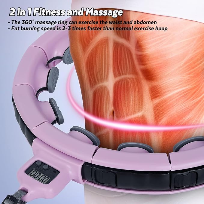 - Smart Fitness hoop can quickly consume body fat and eliminate fatigue. 360° massage exercise your waist and abdomen, reduce the discomfort of the waist and back caused by prolonged sitting. We recommend that you exercise for 30 minutes per day, you will get the ideal figure.