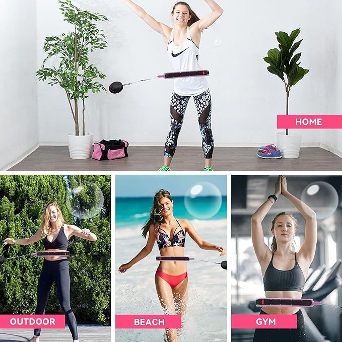 - Innovatively designed smart weighted hoop, easy to assemble and disassemble. Simple to use and convenient to carry, you can exercise at any time, whether at home or outdoors. The size can be adjusted, won't fall, which fundamentally solves the problem that beginners won't use fitness hoop.