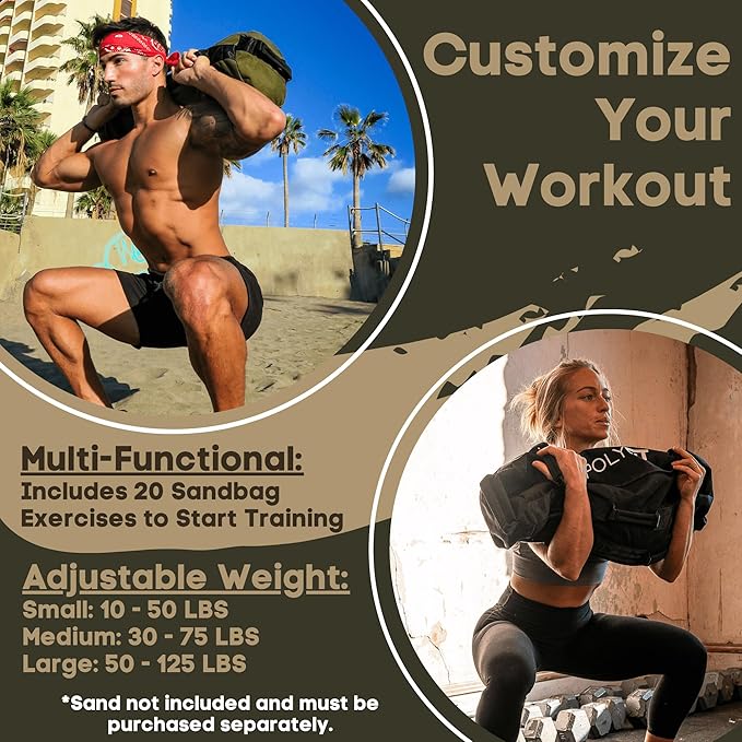 - 【AVAILABLE IN 3 SIZES | SANDBAG FOR WORKOUT】Polyfit’s fitness sandbag comes in 3 sizes: Small (10-50lbs capacity), Medium (30 - 75lbs capacity), and Large (50-125lbs capacity).