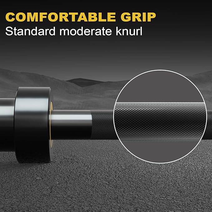 - 【 Moderate Knurl& Durable Coating】With a medium depth knurling, it has plenty of knurl for your heavy lifts, but not a shark tooth knurl that rips up your hands for higher rep workouts. The chrome-plated coating creates stunning looks and durability.