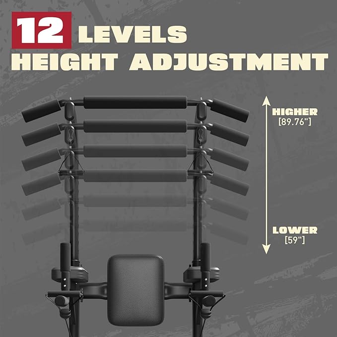 - ADJUSTABLE HEIGHT: The height of this home gym equipment can be adjusted from 59 to 90.6 inches. It can meet the different needs of the whole family at home or in the gym, and you can also adjust the height to meet your needs while exercising. Note: Children use it under the supervision of an adult. For a patient, before using , please consult a doctor.