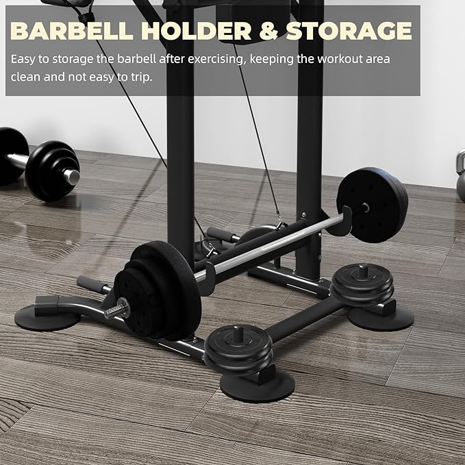 - BARBELL HOLDER: Our home workout equipment is equiped with a barbell storage rack, which is convenient for you to store the barbell after exercising, keeping the workout area clean and not easy to trip.