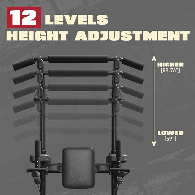 - ADJUSTABLE HEIGHT: The height of this home gym equipment can be adjusted from 59 to 90.6 inches. It can meet the different needs of the whole family at home or in the gym, and you can also adjust the height to meet your needs while exercising. Note: Children use it under the supervision of an adult. For a patient, before using , please consult a doctor.
