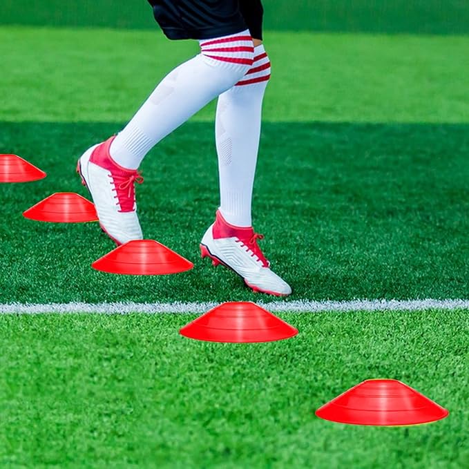 - 【ELASTIC DISC CONES】: Our premium elastic cones can be placed in a wide variety of patterns. Great as boundary markers, sport practice, and targets. Add fun & variety to your cardio workout with a progressive exercise plan using our agility disc cones. This can help with safe weight loss while improving your coordination & heart health. Each disc cone measures 7.2’’ in diameter, 1.77’’ in height.