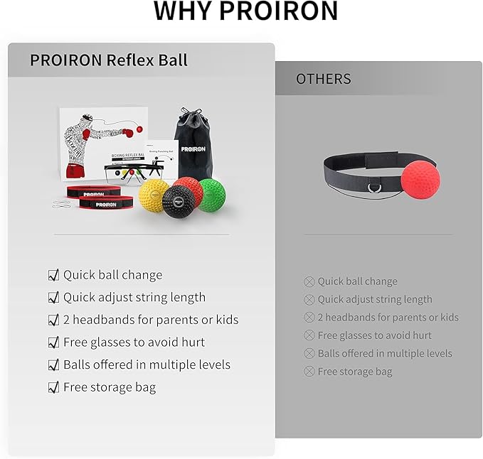 PROIRON Boxing Reflex Ball with Safety Glasses 4 Reflex 2 Headband