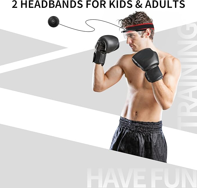- 👊 【Complete boxing reflex ball set】 Great for beginners and experienced fighters, this set comes with 3 different balls at different difficulty levels, a pair of safety glasses, 2 adjustable head band for 2 family members, a storage bag, spare elastic stings.(we guarantee you a full refund if you're not completely satisfied)