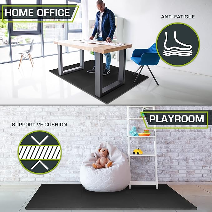 - PROTECTIVE, PORTABLE FLOORING – Dense, durable tiles protect floors and withstand gym equipment and heavy use