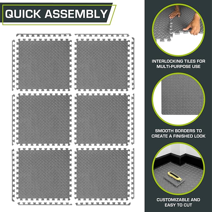 - Easy Assembly – Lightweight interlocking foam tiles connect quickly and easily, and can be disassembled just as simply for quick storage