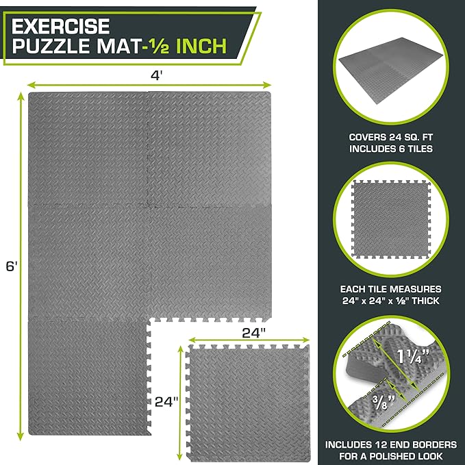 - Color : Grey - 1/2 Inch - 24 Sq Ft - 6 Tiles